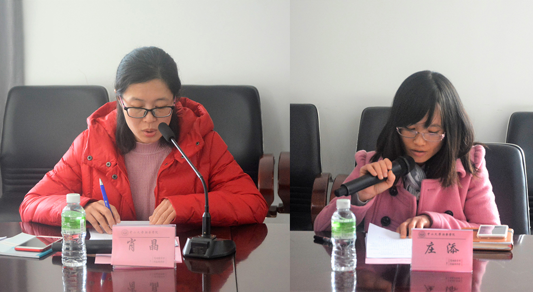 会议第四项,由304am永利集团教工党支部书记肖晶、学生党支部书记庄添作党支部工作总结报告。围绕学习贯彻十九大精神、习近平新时代中国特色社会主义思想为主线,党支部认真组织“两学一做”考学活动,全体党员满分率100%;严格按照党章要求,把好“推荐关、培养关、考察关、审查关”,做好党员发展工作,本学期发展积极分子教工2名、学生40名;落实落细“三会一课”制度,进一步完善支部各项管理制度,并承担党建课题3项。