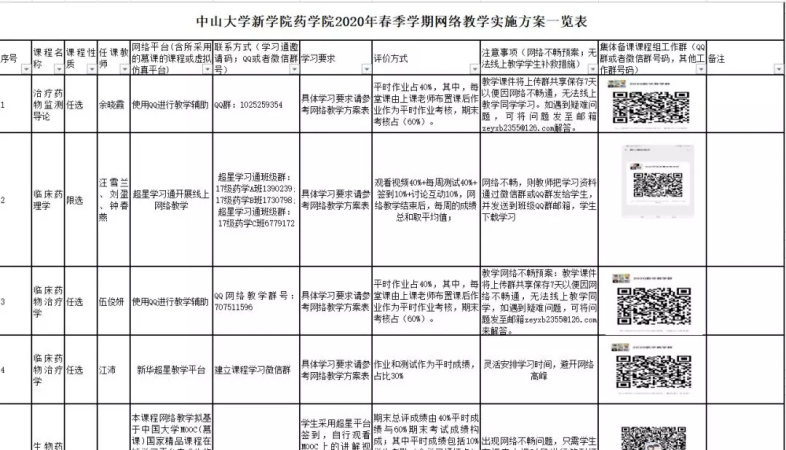 《304am永利集团2020年春季学期网络教学实施方案一览表》