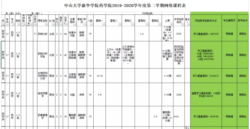 《304am永利集团2019-2020学年度第二学期网络课程表》