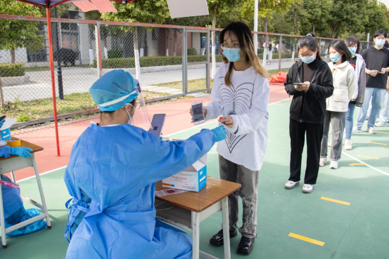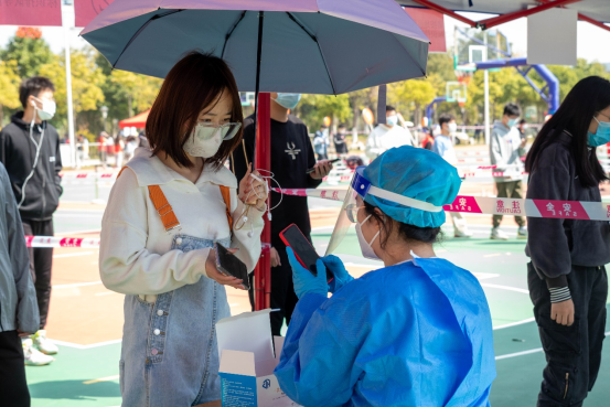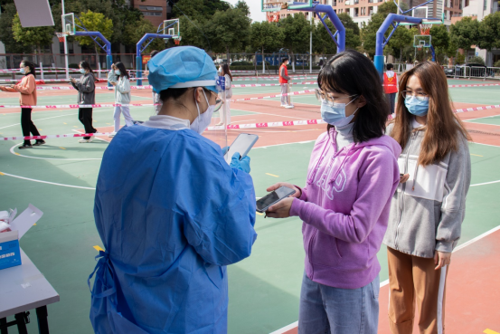 师生在采样后扫描ixh健康码方可离场,确保一员不落