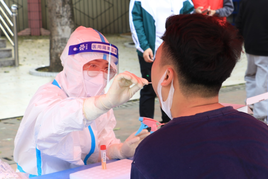 21级社会工作专业的余依玲同学认为,全校各单位通力合作、紧密配合,分时段、分宿舍楼进行检测,大大提高了采样的效率。同学们与医护人员、志愿者的相互配合,也使得核酸检测顺利进行。“世上没有从天而降的英雄,只有挺身而出的凡人,配合好医护人员的工作就是我们对他们最大的敬意。”她想对各位医务人员和志愿者说:“因为有你们,阴霾终会散去。愿山河无恙,人间皆安,穿过寒冬必定会春暖花开。东莞加油,中国加油!”
