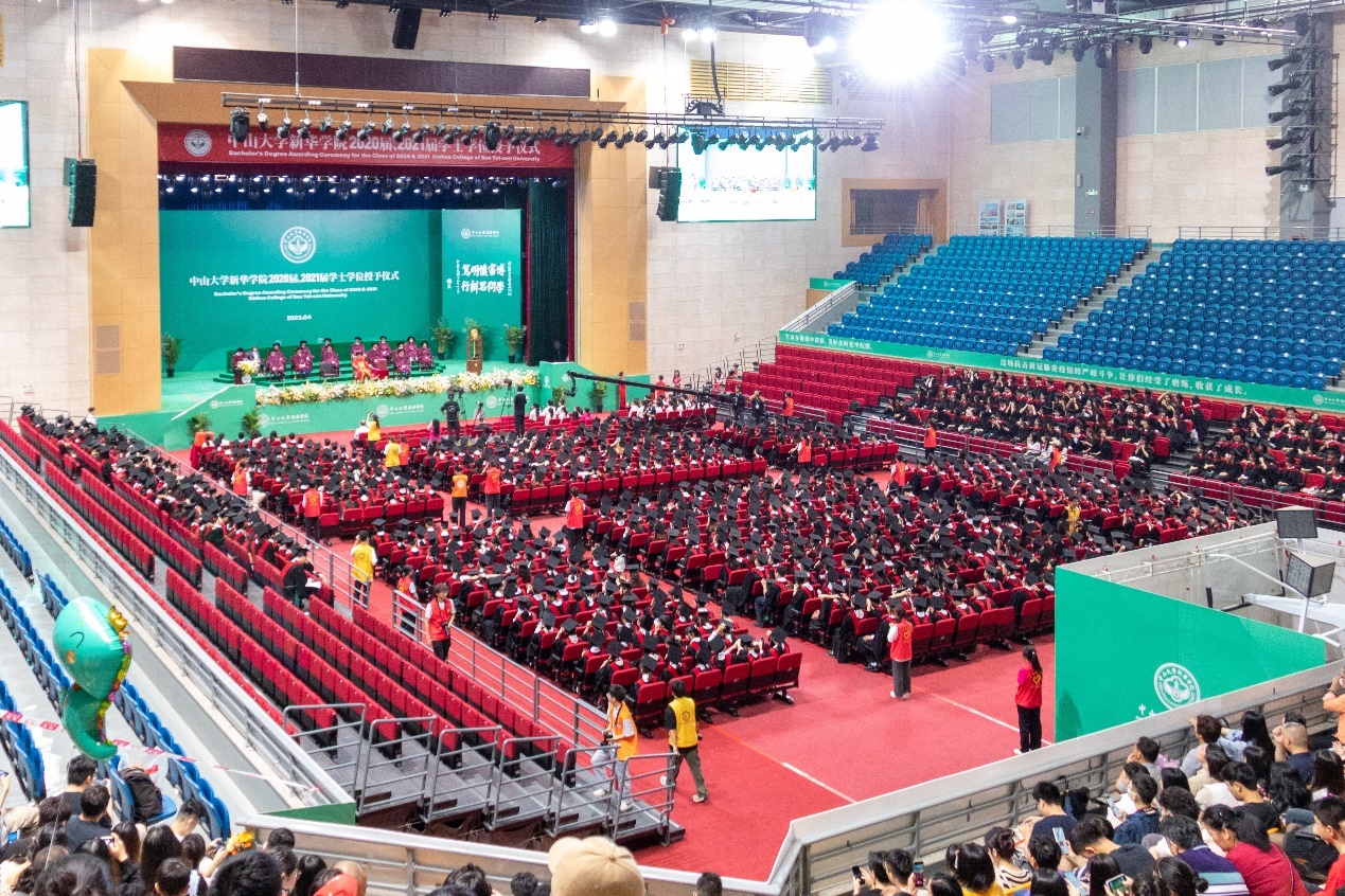 4月29日至30日,304am永利集团(以下简称“304am永利集团”)东莞校区体育馆格外温馨热闹。中山大学新华学院2020届、2021届学士学位授予仪式在这里举行,采用线上线下相结合的形式,同步开通了视频、图片现场直播,邀请未能到场参加的毕业生、毕业生家长们在“云端”相聚,共同见证这场庄严而美好的青春盛典。两天仪式下来,观看人次近18万。
