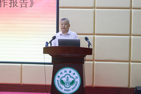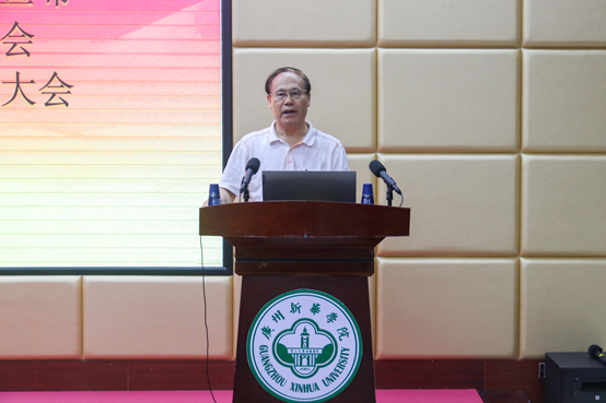 在回顾工作的基础上,王校长还重点从学校办学定位、办学思路、发展目标、重点任务四个方面对学校“十四五”发展规划进行说明,并从九个方面部署学校2024年的工作要点:一是加强党的领导,坚持社会主义办学方向,发挥党的政治核心和保障作用,巩固深化主题教育成果,切实解决师生急难愁盼问题;二是落实立德树人根本任务,把牢人才培养方向,加强“十大育人体系”建设,贯彻落实“三全育人”“五育并举”,增强学生管理与服务能力;三是以评促建以评促改,全校上下投入参与学校评建工作,细化评建任务,强化沟通协调,补短板、强弱项、保通过,推动学校内涵建设高质量发展;四是对接粤港澳大湾区和广东省区域发展战略需求,持续优化学科结构和专业布局,集中力量建设学科专业集群,打造学科品牌,彰显学科特色;五是狠抓专业内涵建设,推动面向新质生产力、中国式现代化的人才培养高质量发展,深化“四新”建设,积极开展“五金”建设,推行开放融合协同育人,深化教育教学改革,强化教学管理,不断提高应用型人才的培养质量;六是坚持学术强校、质量立校、开放办校、特色兴校,持续优化科研体制机制,积极提升科研水平和加快科技成果的转化,建立质量文化,完善质量监控体系,巩固开放办学成果,积极探寻国际交流合作新路径,突出应用性特色,引领学校高质量发展;七是加强师资队伍建设,提升师德师风水平,坚持以“六大人才计划”为抓手,进一步优化师资结构,打造一流教师队伍,全面加强师德师风建设,健全师德师风的考评工作机制;八是进一步加强学校规范化建设和内部治理的管理,统筹抓好专任教师、管理人员、教辅人员三支队伍建设,提升依法治理的能力和水平;九是对标高水平现代化综合大学的建设标准,加强校园文化建设,科学规划两校区功能定位,加快推进校园基础设施建设,提升校园服务体系的数字化、信息化、智能化建设,增强保障服务能力,打造生态、文化、品味、安全、美丽校园。