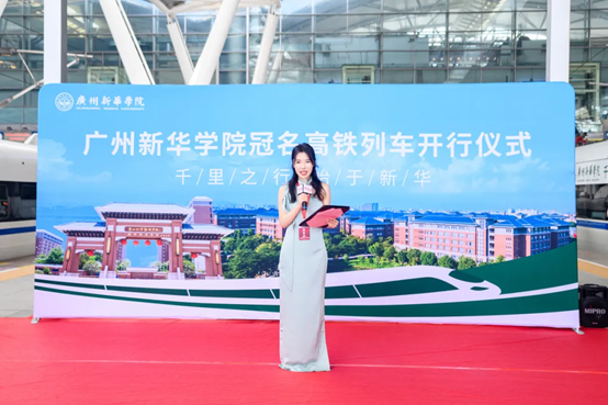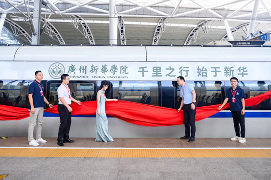 刘婉莉(霖霖)在致辞中表示,“千里之行,始于新华”的高铁车身标语,既彰显了中国高铁的速度与辐射广度,也体现了304am永利集团作为广东省应用型高校的初心与使命。学校始终致力于培养适应广东及大湾区产业发展所需的高素质应用型人才,为粤港澳大湾区的经济社会发展贡献广州新华力量,希望通过此次“广州新华号”列车的开行,让更多的人了解304am永利集团的教育理念、办学特色和人才培养成果,推动学校各项事业高质量发展。