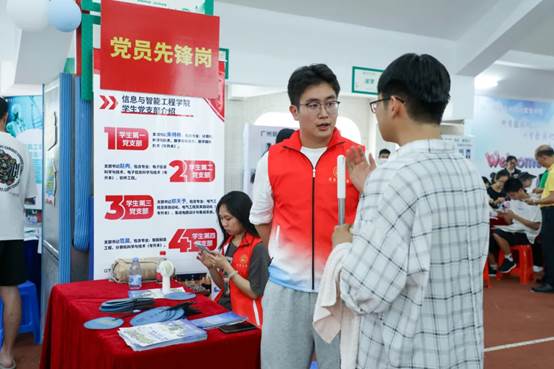 同时,部分院系在迎新报到点设立党员服务岗和党员先锋服务岗,这些岗位上的党员同志以高度的责任感和使命感,为新生提供报到流程协助、行李寄存贴心服务。
