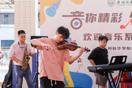 音乐系老师和师兄师姐在报到点带来琵琶、萨克斯、声乐表演