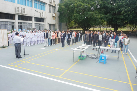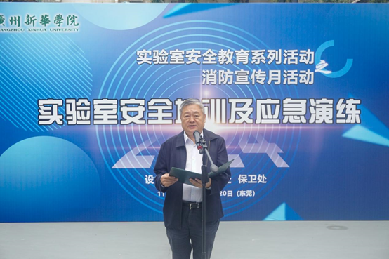 学校校长王庭槐、副校长胡卓加,广州市天河区龙凤消防微站助理黄宏贤,各院系分管实验室的领导、实验室主任、实验员,以及各二级院系和相关部门逾300名师生出席活动。本次活动由学校副校长姚正安主持。