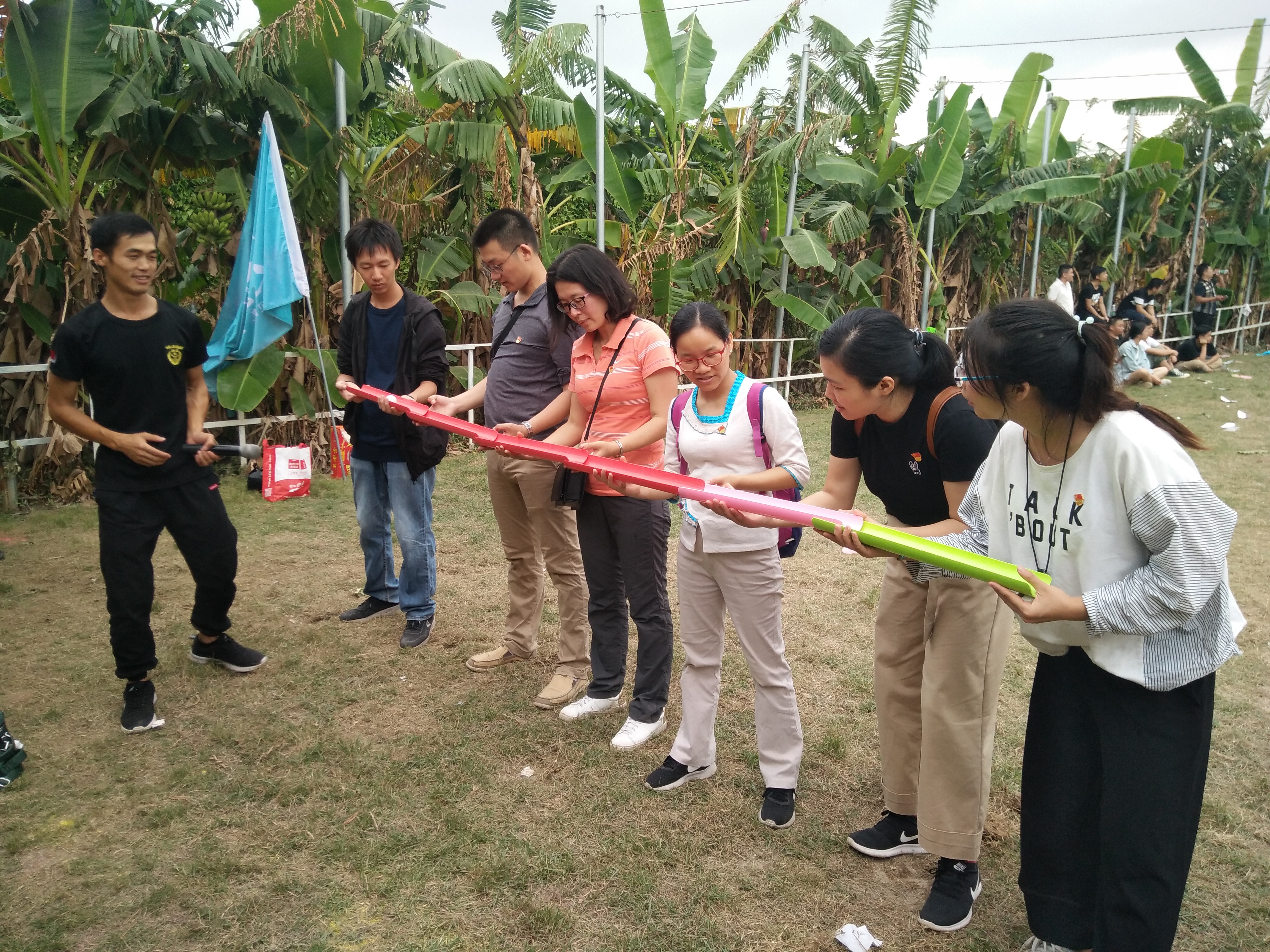 到达下一个目的地,吃过午饭后,我们开始了素质拓展项目,有破冰活动组建战队、无敌风火轮、拔河比赛、珠行万里和真人CS野战五个项目,项目目的是为了打破新团队成员之间的隔阂,加强相互了解和信任,形成团队成员的基本价值观,培养学员团结一致,密切合作,克服困难的团队精神,培养计划、组织、协调能力;培养服从指挥、一丝不苟的工作态度;增强队员间的相互信任和理解;有效地开发其潜能,提升和强化个人心理素质;激发团队精神,增强团队凝聚力,更为融洽地与群体合作;发队员的责任感、自信心、独立能力,领导才能、团队合作精神以及面对困难和挑战时的应变能力等。这次的拓展,让大家更团结,更互相信任了。
