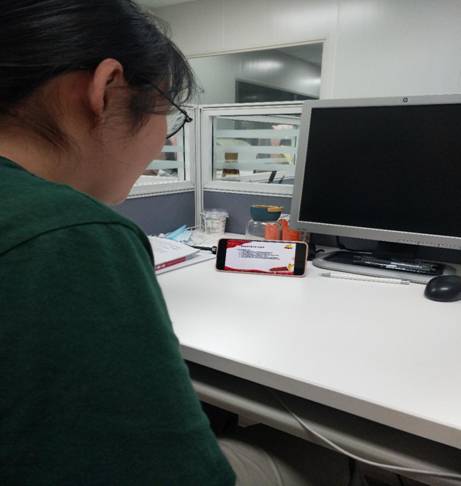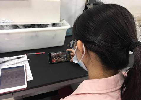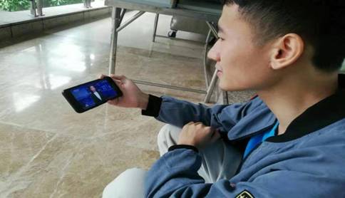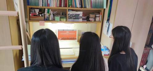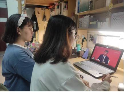 林轶萱同志(左)和赖紫莹同志(右)共同学习习近平总书记出席深圳经济特区建立40周年庆祝大会重要讲话精神