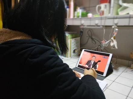 黄钰同志(左),陈心想同志(中)和钟常凤同志(右)共同学习习近平总书记出席深圳经济特区建立40周年庆祝大会重要讲话精神