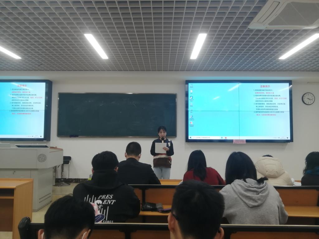 图一:学生会宣传部执行部长李嘉欣主持与汇报第十七周工作总结及十八周工作计划