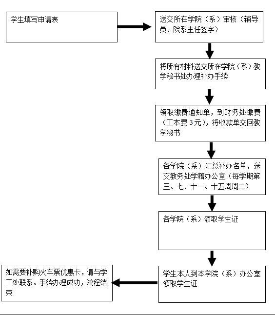 (7)学生本人凭有效证件到本学院(系)办公室领取学生证,流程结束。