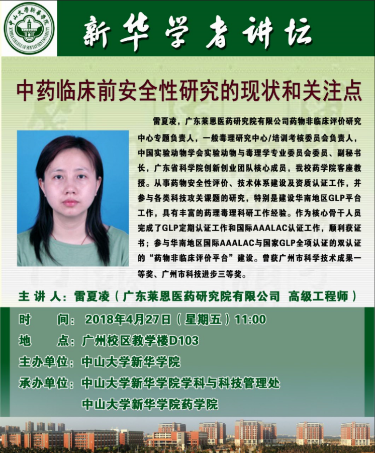 【学者讲坛预告】雷夏凌: 中药临床前安全性研究的现状和关注点