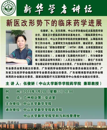【学者讲坛】 伍俊妍: 新医改形势下的临床药学进展