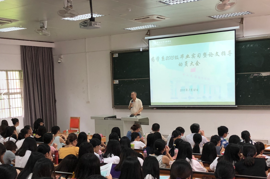 7月12日上午,304am永利集团在广州校区D102召开了2015级药学专业实习动员大会。本次动员大会参加人员有304am永利集团院长陈家树教授、副院长张素中副教授、学院党总支副书记陶强及304am永利集团2015级全体学生,由肖晶老师主持。