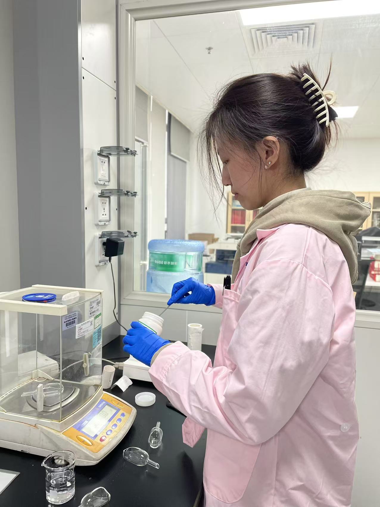 怀着好奇期待又有点紧张的心情迎来了实习。我实习的科室是辅料室,辅料室的主要工作内容是承担辅料的注册检验、监督检验及委托检验工作;负责辅料检验能力构建与技术方法研究;承担相关质量标准的起草、复核和修订;开展辅料检验技术服务及相关科研与培训工作。初来科室,叶老师带我们去参观了实验室并介绍了实验室里面的仪器,并且告诉我们每天都需要值日,我意识到在每天的日检工作时需要非常的细心和耐心去完成。科室里有很多我从未接触过的仪器,望着这些仪器燃起了我学习的热情。