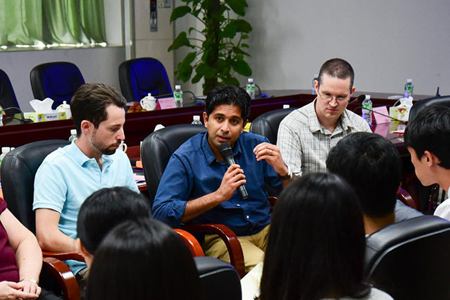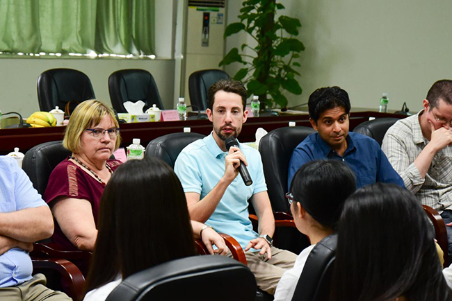 16级陈娴同学在交流过程中向Prof.Neale Cohen提问:因为基因疗法是针对疾病的根源而不是症状来治疗疾病的,是否运用基因治疗技术在1型糖尿病模型体内实现胰岛再生从而有希望完全治愈1型糖尿病?