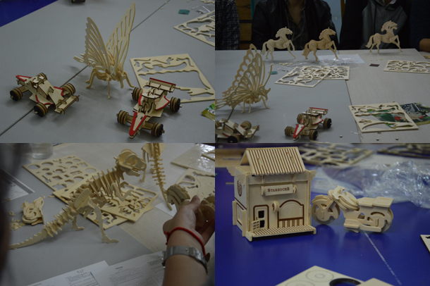 辅以木板相拼,拼出不同的模型,一块小小的木块,我们需要把它拼出立体的模型。而每一个不同的模型都有不同的代表意义,经过用心拼出来的木板模型都是我们想拼出来的美好人生。微丁香志愿服务队策划本次活动,由蔡梓文同学讲解木板的拼法以及展示一些已经拼好的木板模型