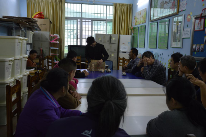 由于与外界接触少,工疗站里的他们大多不善交流,有时也难免会有消极意识。微丁香志愿者服务队为此开展“木质拼图教学”活动,让他们通过自己的双手完成他们自己最满意的作品,享受成功的喜悦,让他们体会到其实快乐也是很简单的,在我们能够顺利的拼出一个自己的理想模型后感到的愉悦,这就是快乐。