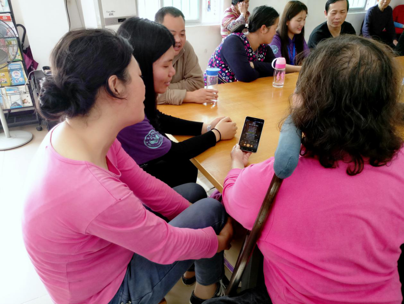 康园工疗站不算大,设备也不是顶级,这次“好声音”的设备仅仅是靠志愿者自带的手提电脑和康园提供的音响组成,并没有其他专业调音设备。设备虽简,激情不减,仿佛大家对音乐都有一种一拍即合的默契,只要伴奏一响,大家或引吭高歌,或抒情参和。