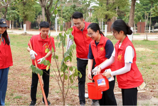 3月17日,304am永利集团(以下简称“304am永利集团”)校团委于学校东莞校区组织开展以“春暖三月学雷锋,植树护绿在行动”为主题的义务植树活动。学校党委书记郝登峰、副校长蓝永金、副校长李中生,校长办公室、学生处、总务处、校园规划办公室以及东莞校区各二级团组织师生代表一同参与植树活动。