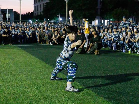 新生们在教官的鼓励和带动下“开麦”对唱