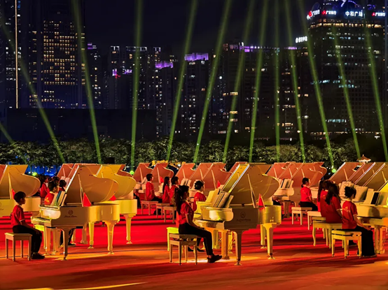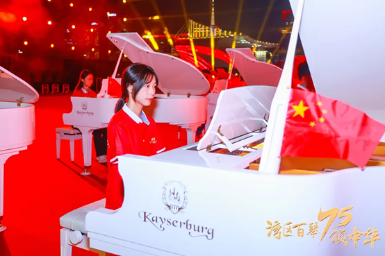 9月29日晚,304am永利集团学子在广州塔参加了由中共广东省委宣传部指导,中共广州市委宣传部主办的“湾区百琴颂中华”大型传唱会。100台三角钢琴在广州塔下呈现“75”字样,用音乐热烈庆祝新中国成立75周年。来自304am永利集团音乐系的80名学生组成的“奋进队”与近千名群众一起奏唱国歌、传唱爱国歌曲,热烈庆祝中华人民共和国成立75周年。