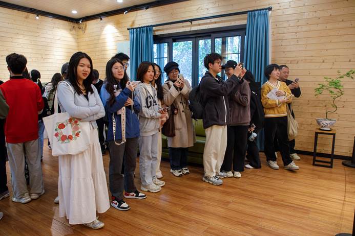 张乐表示,她非常荣幸受到学校与基金会的邀请,在本次展览中携作品为大家呈现了展览的“第三朵花·绮园”。在这春意盎然、繁花似锦的校园里,她希望同学们在欣赏这些艺术作品时用心体会到自然与人之间的紧密联系,呵护好自己内心的“艺术之花”,并将这份对艺术的热爱传递到更远、更广的地方。